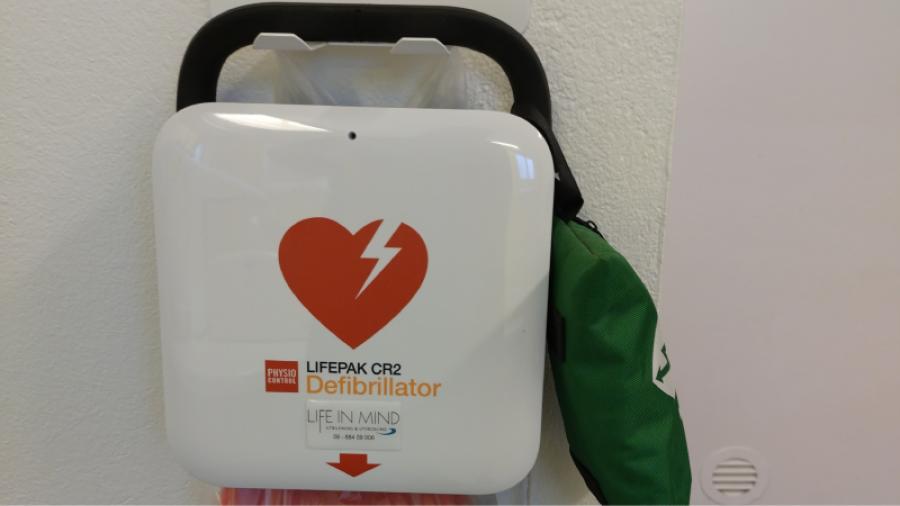 Vi har en Lifepak CR2-hjärtstartare på plats - enkel att använda även för dig som aldrig provat förut.